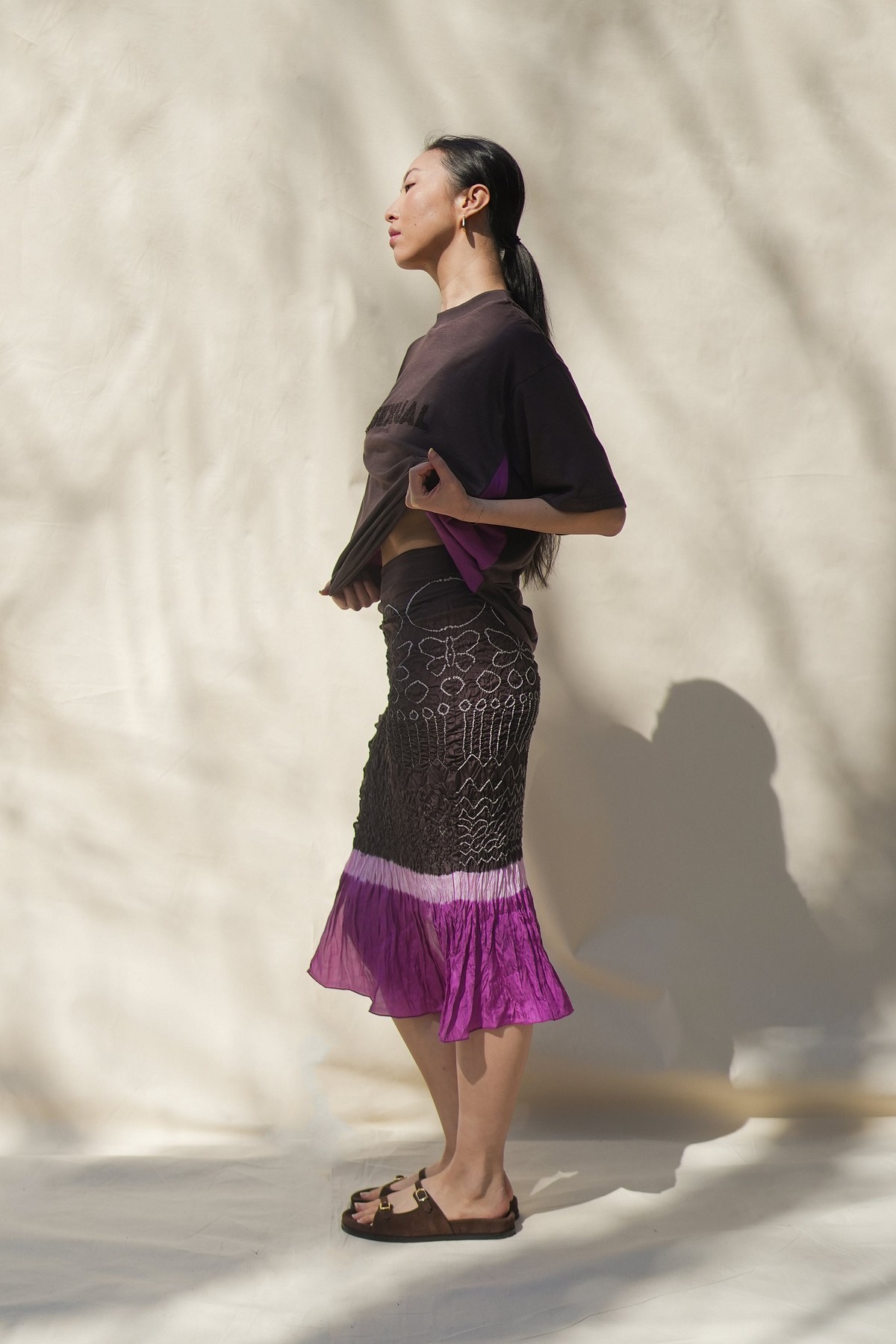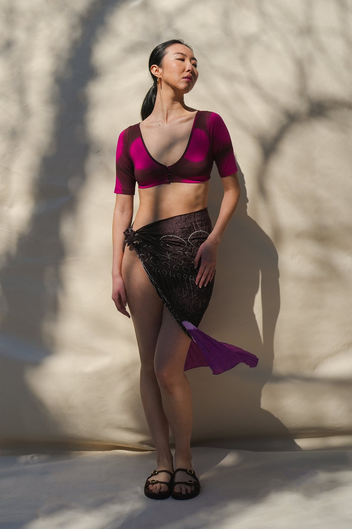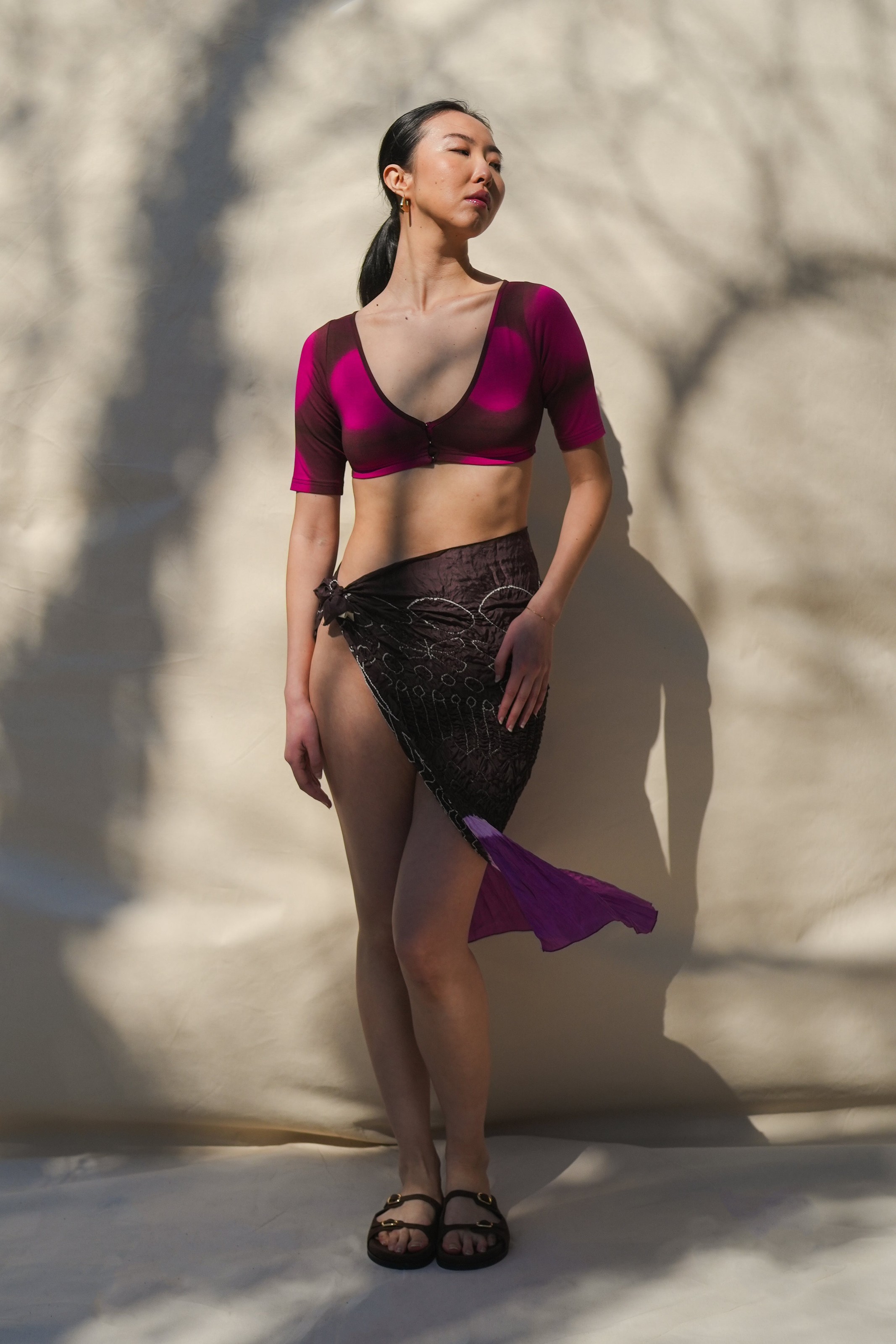 Second Model is 5'8" and wearing the sarong once it’s been ironed or steamed out flat.
