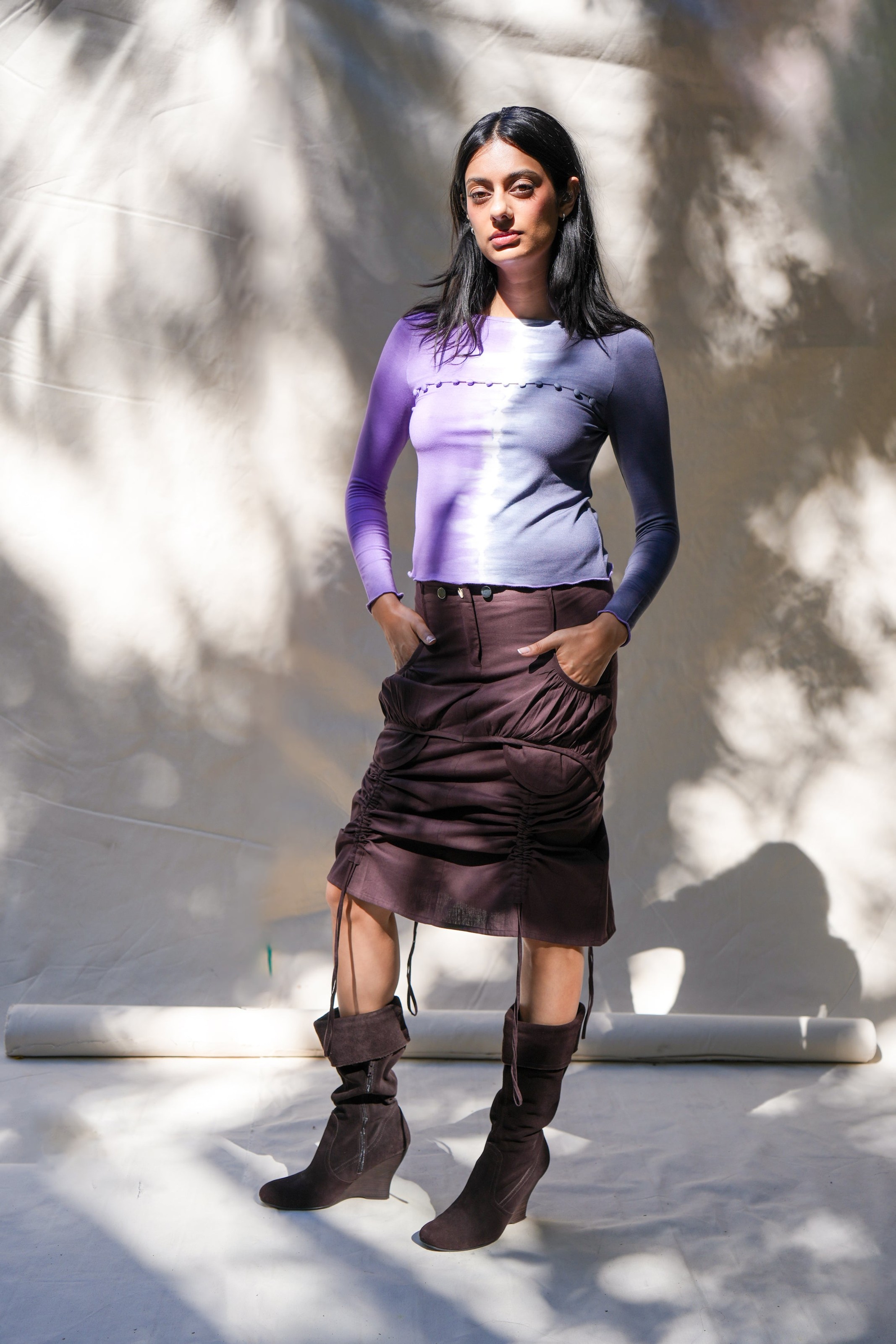 A 90s-inspired essential, this long-sleeve Tee made of soft jersey has self-covered buttons, and a contoured fit. Leave the buttons undone for a subtle peekaboo yoke moment. Tie-dye inspired by a dusk to dawn concept. Each top is garment-dyed by expert artisans by hand in Delhi, India in a limited run.