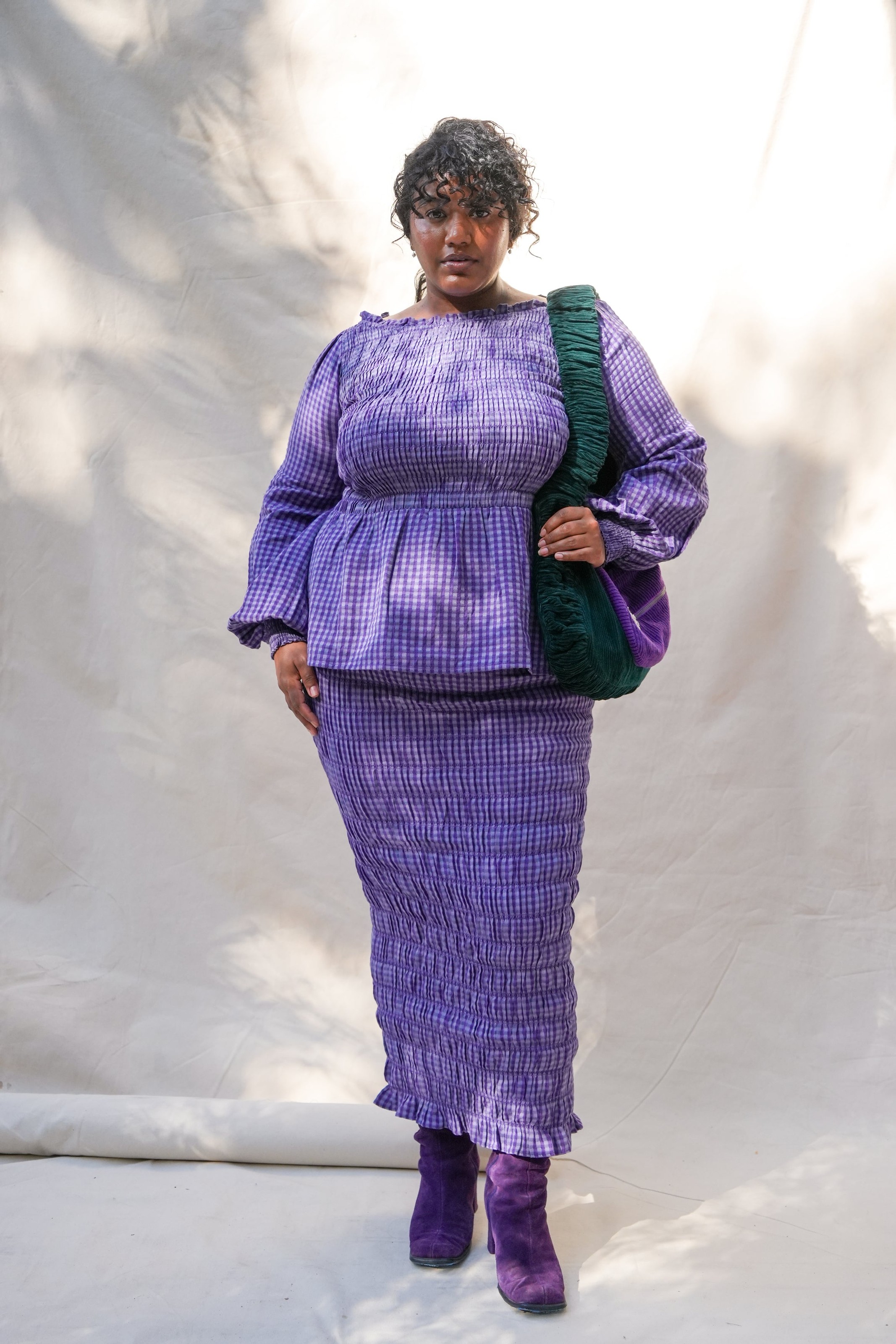 This best-selling convertible piece can be worn two ways—as a smocked maxi skirt or pulled up as a strapless dress. Crafted in our custom wool-blend gingham, the fabric is warm enough for cooler months while remaining breathable in warmer weather. Elasticized smocking all around ensures a flexible, curve-flattering fit that’s as easy to wear as it is to style. Versatile, seasonless, and timeless—this is a cornerstone of the abacaxi wardrobe.